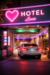 調査対象車両は、来た道を戻り途中SA(サービスエリア)に寄り高速を降りる。高速を降りたところにラブホテル街があり同車両の位置情報がラブホテル街で確認する。GPS発信機の位置情報をもとに同ラブホテル街に到着しラブホテル敷地内駐車場で駐車する同車両を確認する。2時間後、ラブホテルから出て調査対象車両に乗車する調査対象者と先程の女性(30歳代 / 以下、第二調査対象者と呼称する)を確認する。